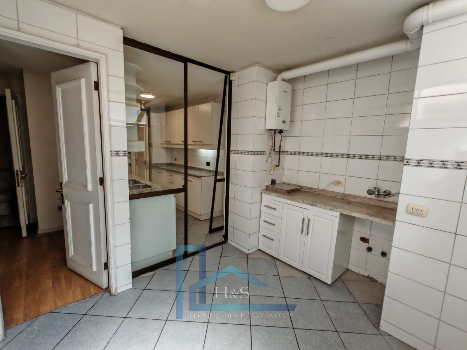 Gran cocina. Enorme logia con espacio para comedor de diario y pieza con baño de servicio.