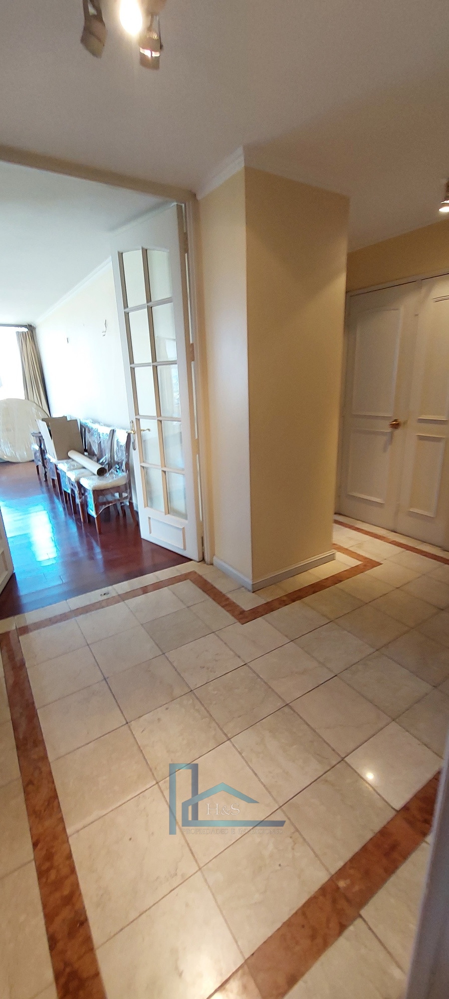 Hall de entrada con piso de mármol.