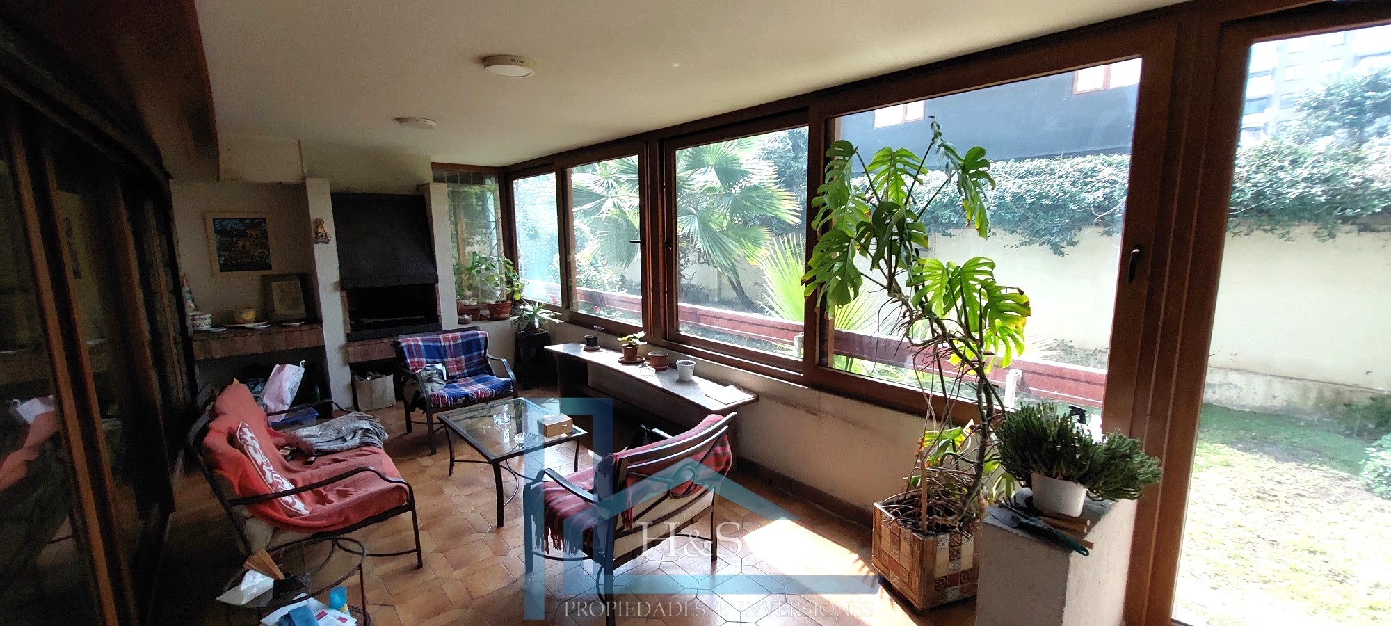 Gran hall de entrada con piso de mármol, living comedor separados con piso flotante, salida a una terraza cerrada que conecta a jardín, ventanas termo panel, dormitorio principal en suite con walk in closet y closet fuera, 2 dormitorios, 2 baños, closet de ropa blanca.